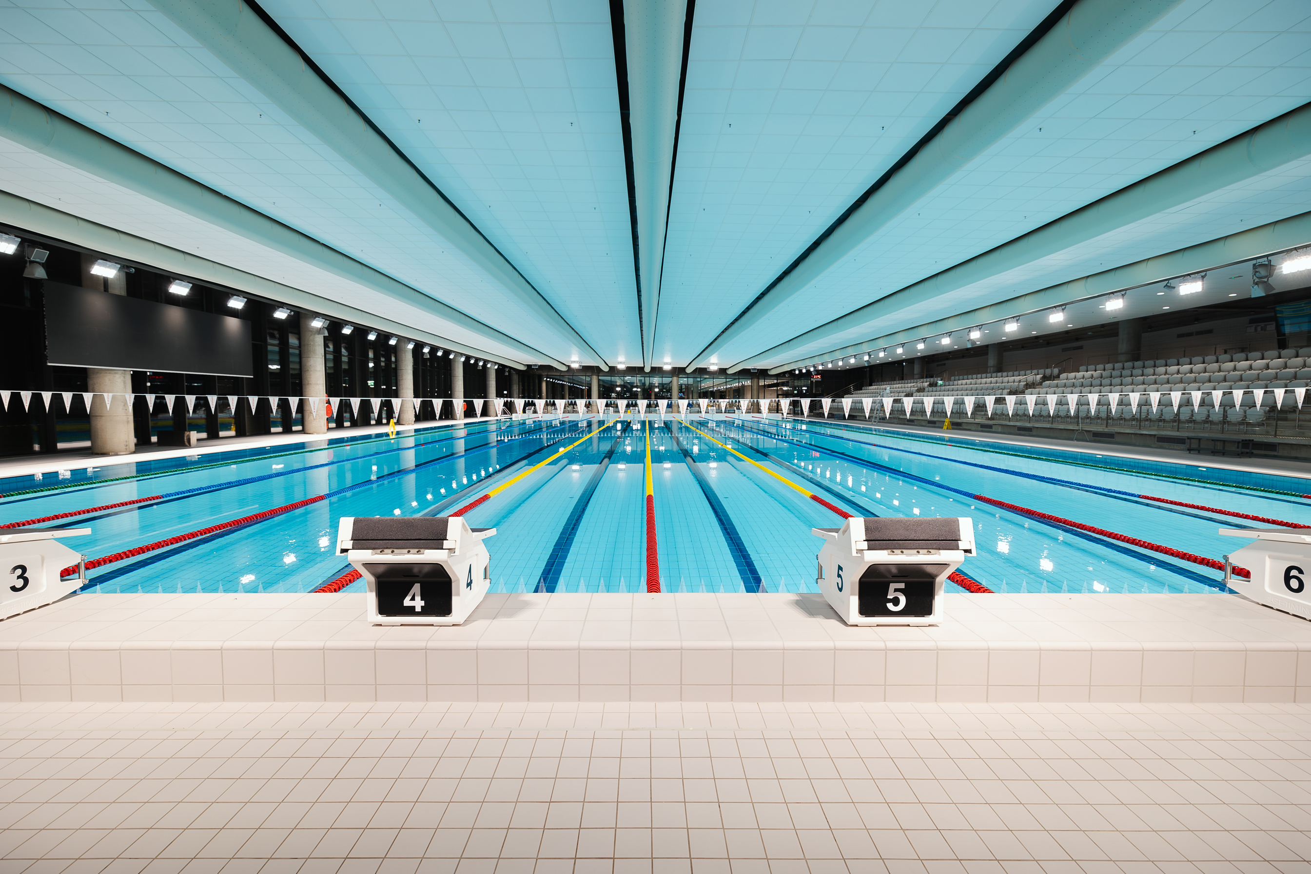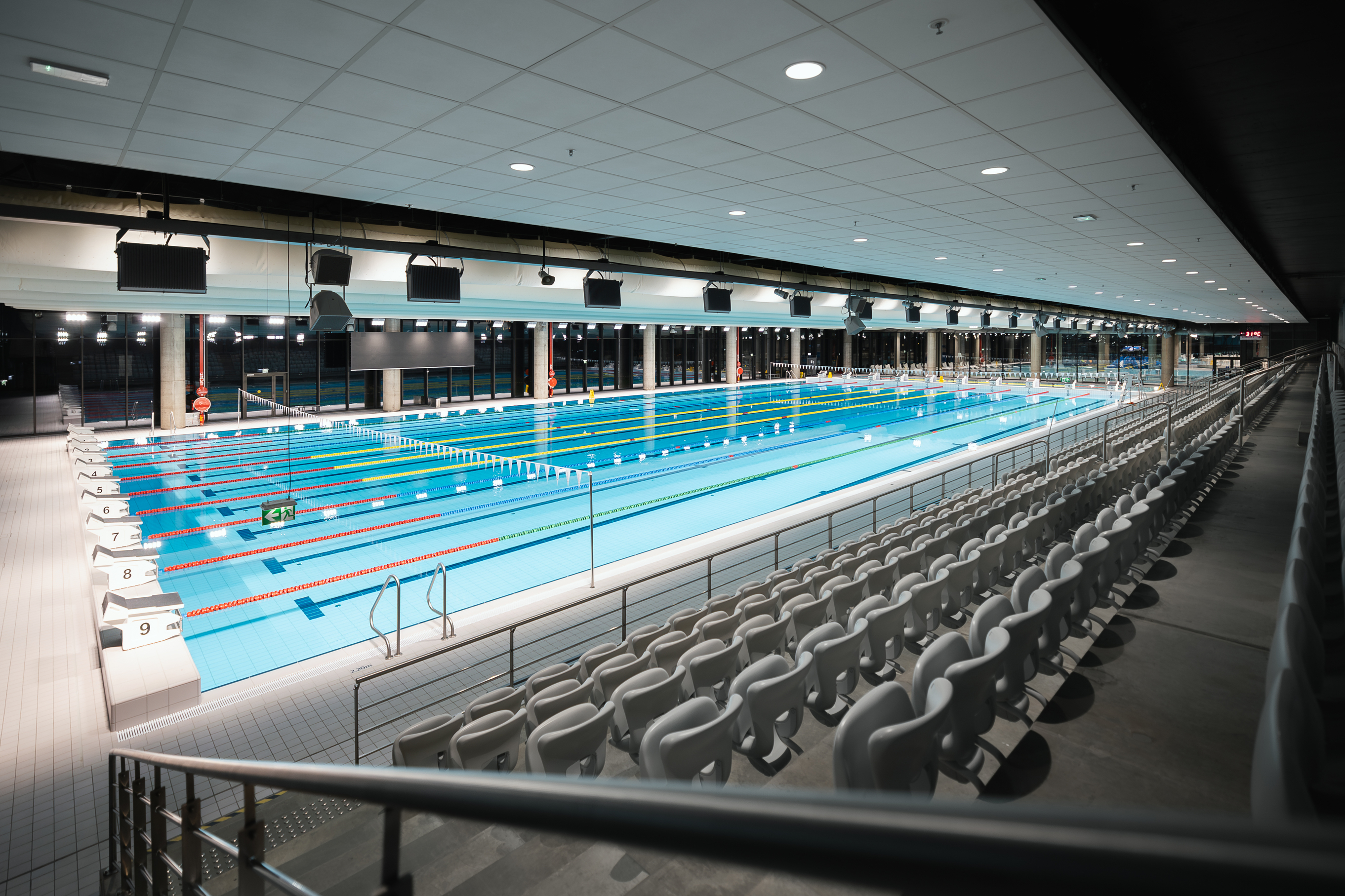 Žalgirio Swimming Pool is a modern swimming and water entertainment complex located on Nemunas Island in Kaunas, directly connected to Žalgirio Arena via an underground tunnel. The facility seamlessly blends into its surroundings with a grass-covered roof and partially underground construction, making it almost invisible from the outside. Spanning over 18,000 square meters, the pool complex invites guests to enjoy advanced aquatic sports, wellness, and relaxation just steps from the city center.