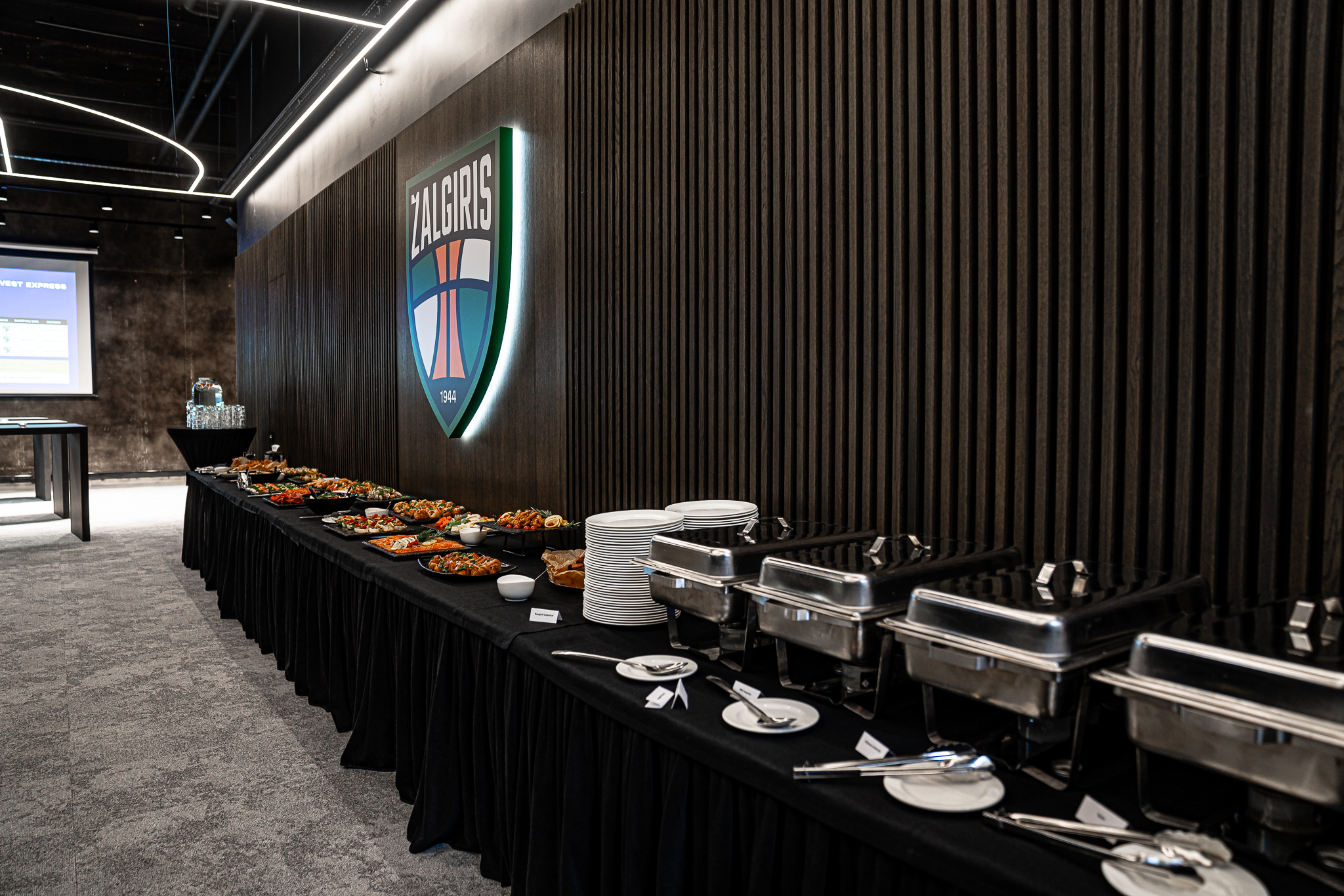 The payabl. VIP Hall, located on the ground floor of Zalgirio Arena, is an exclusive lounge offering an immersive, all-inclusive hospitality experience. It guides guests on a seamless journey from a private arrival to the final buzzer. This newly renovated space combines premium amenities with unparalleled courtside proximity, creating a truly unforgettable way to experience a Zalgiris game.